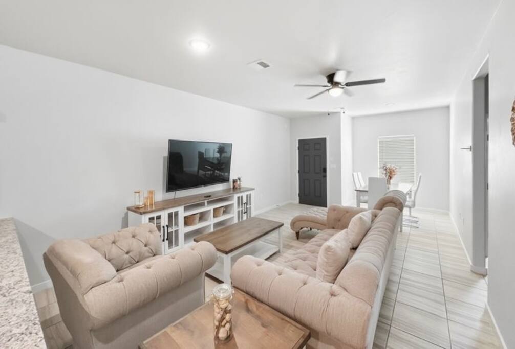 This beautifully decorated apartment is the perfect getaway for couples or small families looking for a peaceful retreat. The living room features a comfortable sofa and a flat-screen TV, perfect for relaxing after a day of exploring the surrounding area. It’s a 2 bed 2 bath apartment in the first floor.