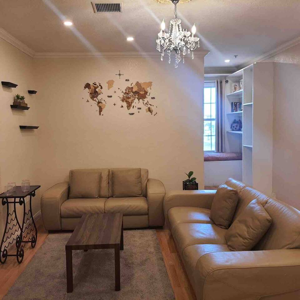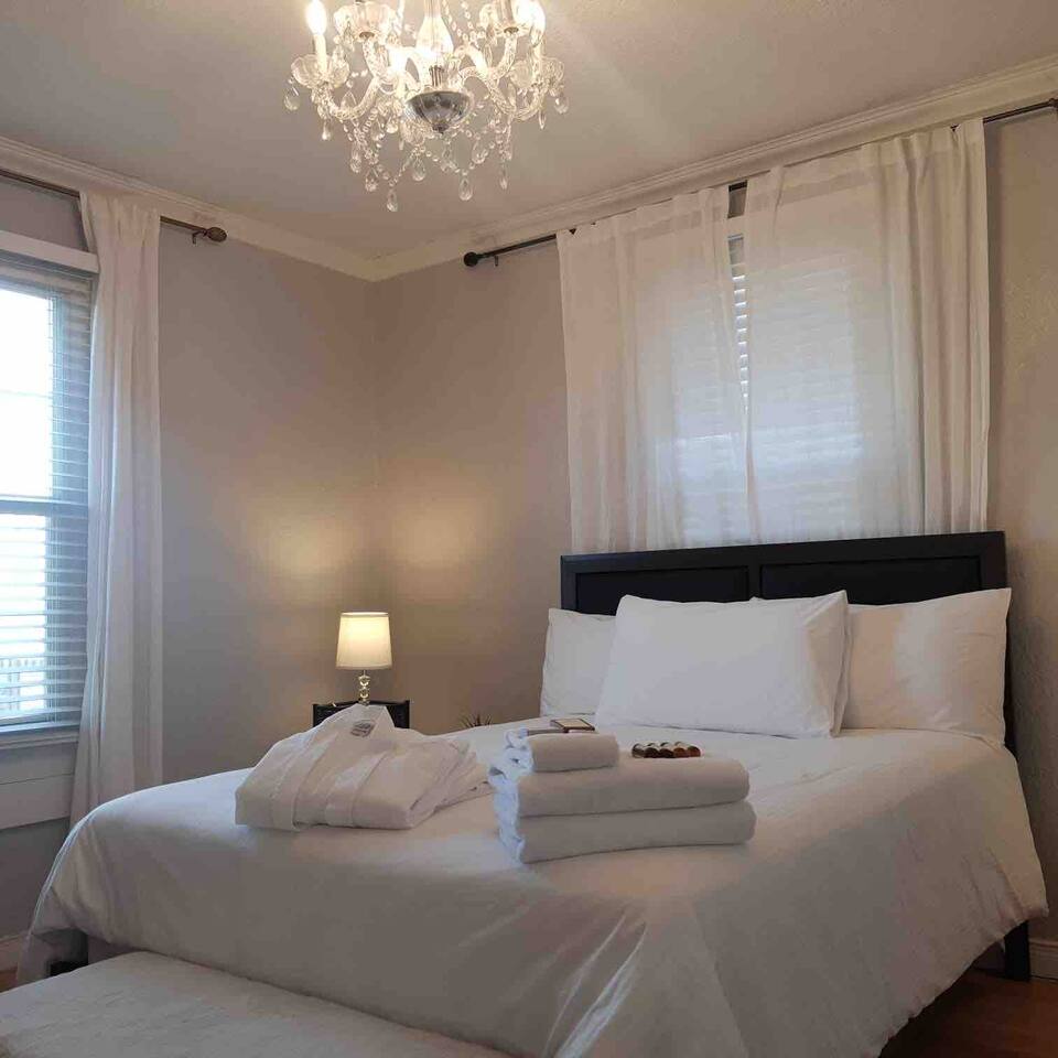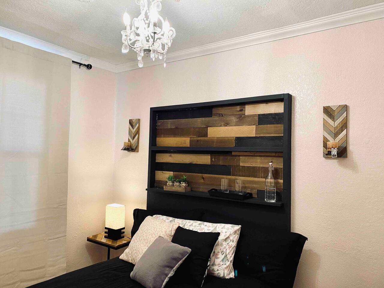 This listing is for recently renovated Apartment 1 inside the private Union Plaza Apartment Complex. The building was built nearly 100 years ago. The unit is located on the second floor of the building which will require climbing stairs, there is NO ramp for luggage. The 2 bedroom apartment is about 1,000 square feet and it comfortably accommodates 4 guests. The apartment has refrigerated air. ** NOTE: All units are located on the 2nd floor of the building, stairs are not optional, the 1st floor are all commercial spaces. ** The kitchen space was designed with a modern contemporary style in mind, ergo the open shelving space. It is fully equipped for cooking, it features an electric stove, a two door refrigerator, a single sink with a garbage disposal, an over-the-range microwave, pots and pans, dishes and utensils and solid surface countertops. All appliances are brand new. We also have dishwasher for you not to worry about the dishes. The bathroom includes a full shower with handheld shower head and great water pressure, a freestanding tub as well as a new double vanity and two skylights for energy saving. In the living area, there’s a 50” smart tv mounted to the wall. Along comes it’s comfortable set of couches, an entry way by the door and next to the entrance of the bedroom. We also have a nook to read a book and unwind. We don’t have cable nor antenna, only streaming services. *****COUCHES ARE NOT FOR SLEEPING NOR STANDING***** The main bedroom features a Queen Bed, alternative pillows, 100% cotton linens, a closet w/ hangers and drawers and a view of the union plaza district from two different windows. The second bedroom has a built on the wall headboard with a very rustic finish and a full size bed that sleeps 2 persons. It has functionality with it having space to place phone and charger coming through as well as space for a glass of water or a book. To the right you’ll find a window looking down towards the Main Street of the union plaza district. To the left you’ll find a small couch with a coffee table along a built on the wall hanger. Please make sure to review house rules prior to booking!