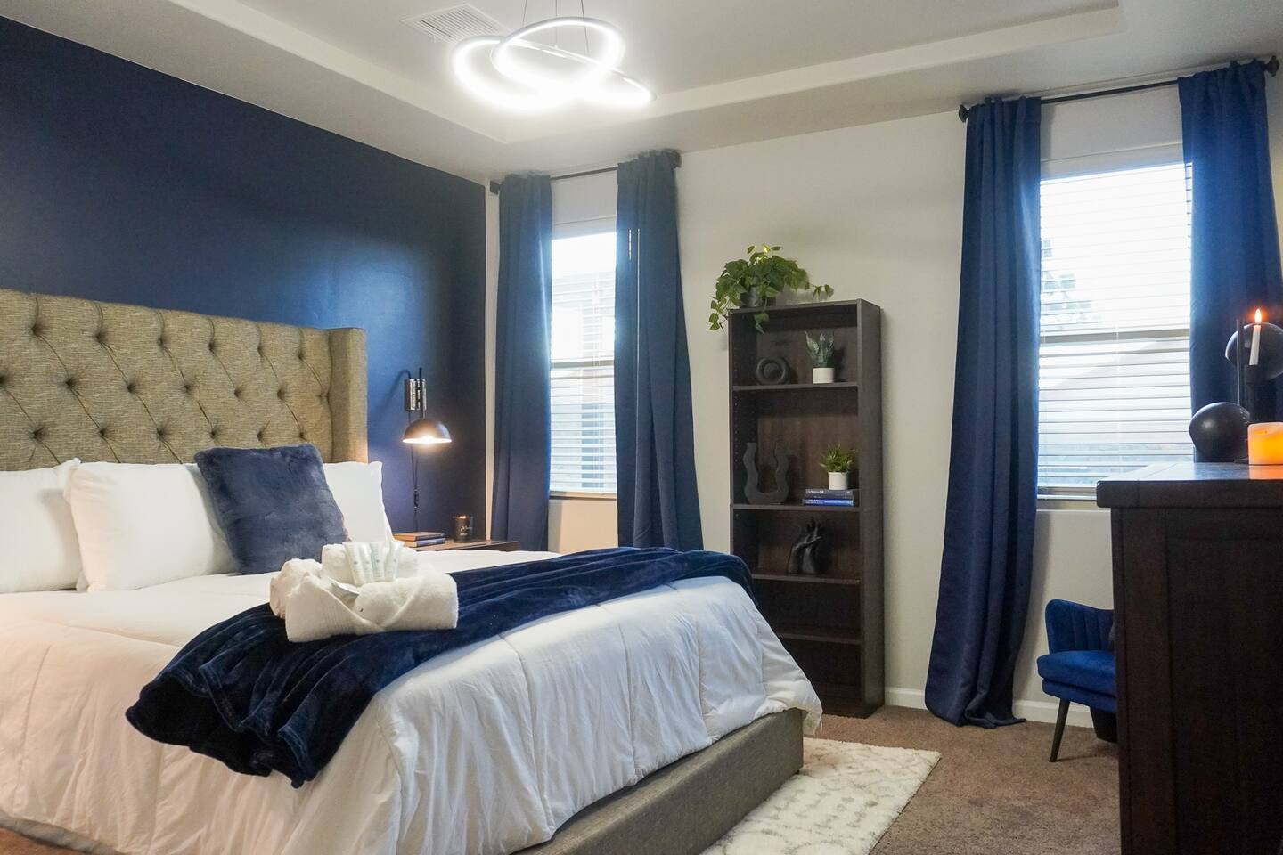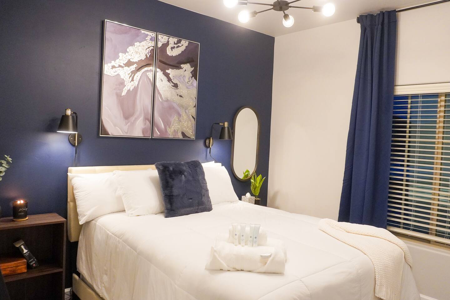 Welcome to our stunning mid century modern home, located by Country Club. This beautiful and spacious 3 bedroom, 2 bathroom property is the perfect choice for your next vacation in sunny El Paso. Our mid century designed home boasts unique accent walls, wood work creating a unique atmosphere for you and your guests. The moment you enter this stunning home, you'll be greeted by a charming and stylish mid century modern design. The spacious living room features large windows that let in plenty of natural light, and comfortable seating where you can relax after a day of exploring. The fully equipped kitchen has all the appliances and essentials you need to prepare delicious meals for your group. The three bedrooms are tastefully furnished with comfortable beds, ensuring a restful and rejuvenating night's sleep. The two bathrooms are both modern and stylish, with plenty of towels and toiletries provided for your convenience. Step outside to enjoy the backyard, which is fully functional and perfect for relaxing and spending time with loved ones. The beautifully landscaped yard is complete with comfortable outdoor seating and a barbecue grill, making it an ideal spot for outdoor dining or just lounging in the sun. This lovely home is located in a quiet and peaceful neighborhood, yet just a short drive from all the attractions that make El Paso such a popular family friendly destination. With plenty of space to accommodate up to six guests, this is the perfect choice for families or groups of friends who want to experience all that the area has to offer. Thank you for considering our beautiful mid century modern home as your home away from home. We can't wait to welcome you!