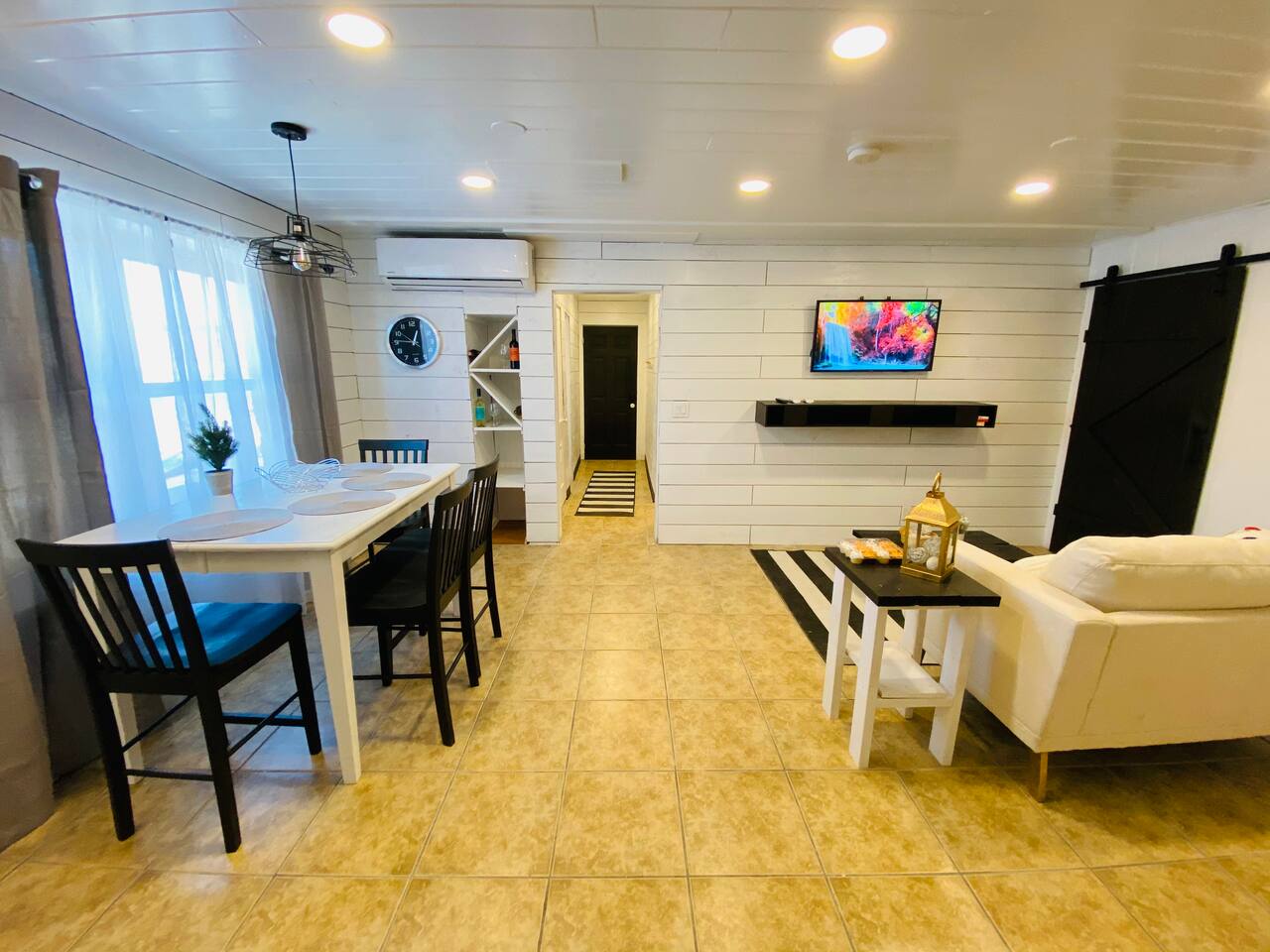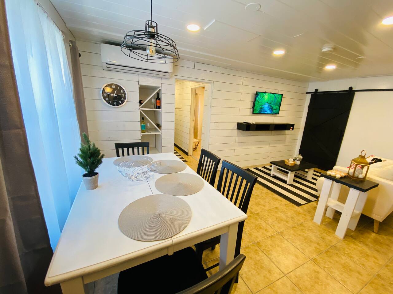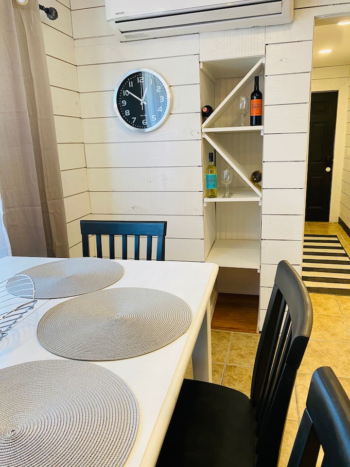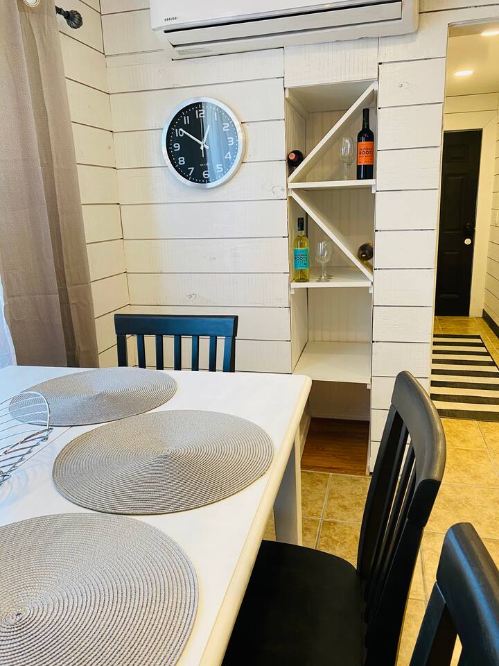Brand new modern escape in Central El Paso. Professionally designed and remodeled Duplex with a light, airy aesthetic, and natural textures throughout. This listing is for one half of a remodeled two-unit duplex. This unit is about 800 square feet. It includes a newly remodeled kitchen, living and dining room, 1 bedroom and 1 bathroom. As you enter the space you will be welcomed by a modern farmhouse design of living room plus dining table. The lighting is excellent all around. We have design the space to where you can easily relax and unwind. In the living room has a flat 40” screen smart TV where you can access Netflix, Hulu, and other TV apps. There is no antenna or cable! The design is completed with a sleek white and gold couch, rusty coffee table and side table. The newly remodeled farmhouse kitchen is complete with pots, pans, dishes, silverware, coffee maker, oven gas range, over the range microwave and double door fridge. While there is no complimentary breakfast, we always make sure there is coffee and tea stocked for your convenience at our coffee bar. The dining room is open to the living room and has seating space for 4. A square white dining table with black tall dining chairs. The bedroom boasts a Queen size bed with a brand new mattress and plenty of pillows to customize your comfort. This room is a modern Boho style with abstract art and honeycomb shelves. There’s a bathroom with an oversized walk-in rainfall shower, plus fully stocked vanity toiletries. This apartment is complete with an easy to control Mini splits both on the living area and bedroom, smart TV, and plush furnishings. You will have direct access to the laundry room. Please remember that the laundry room is a shared space and you must not leave your belongings unattended plus always be fully dressed when in shared spaces. That includes wearing a t-shirt at all times. We have a big backyard/patio that we are still working on. This space will be shared between the units and at the moment with the hosts.