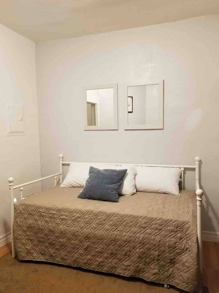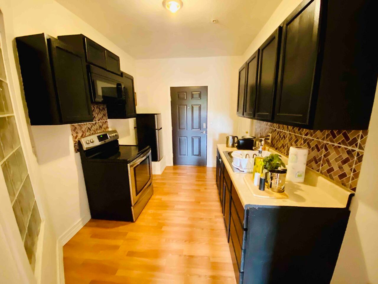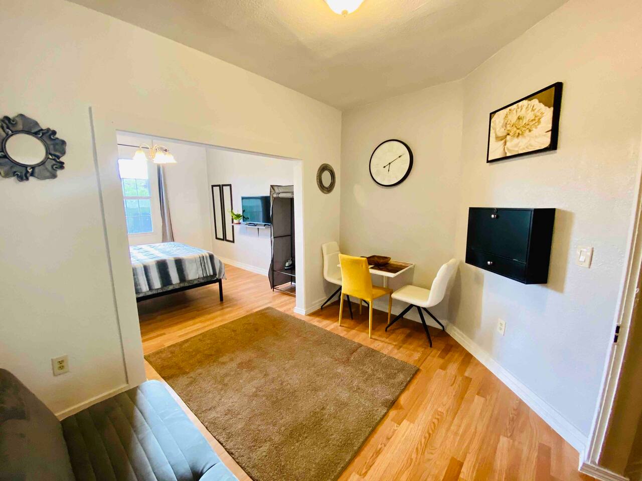This listing is for recently renovated Apartment inside the Union Plaza Apartment Complex. The building was built nearly 100 years ago. The unit is located on the second floor of the building which will require climbing stairs, there is no ramp for luggage. The studio is about 450 square feet and it comfortable accommodates 2 guests but can sleep up to 4, there's a day bed and twin trundle bed available in the living area. ** NOTE: All units are located on the 2nd floor of the building, stairs are not optional, the 1st floor are all commercial spaces. ** The kitchen space was designed with a modern contemporary style in mind, ergo the open shelving space. It is fully equipped for cooking, it features an electric stove, a double sink with a garbage disposal, an over-the-range microwave, pots and pans, dishes and utensils, and solid surface countertops. The bathroom includes a full shower with handheld shower head and great water pressure, as well as a new vanity and a skylight. In the living area, there’s a small Ikea foldable table with 2 chairs. There’s also a standing desk next to the table. Across from the table there's a daybed and twin trundle bed for guest #3 and #4. There are two doors separating the living area with the bedroom. The bedroom features a Queen Bed, alternative pillows, 100% cotton linens, a movable closet w/ hangers. Next to the bed there is a shoe rack and to the other side a vanity table. Next to the window you will find the Mini Split AC/Heater with control remote. Please make sure to review house rules prior to booking!