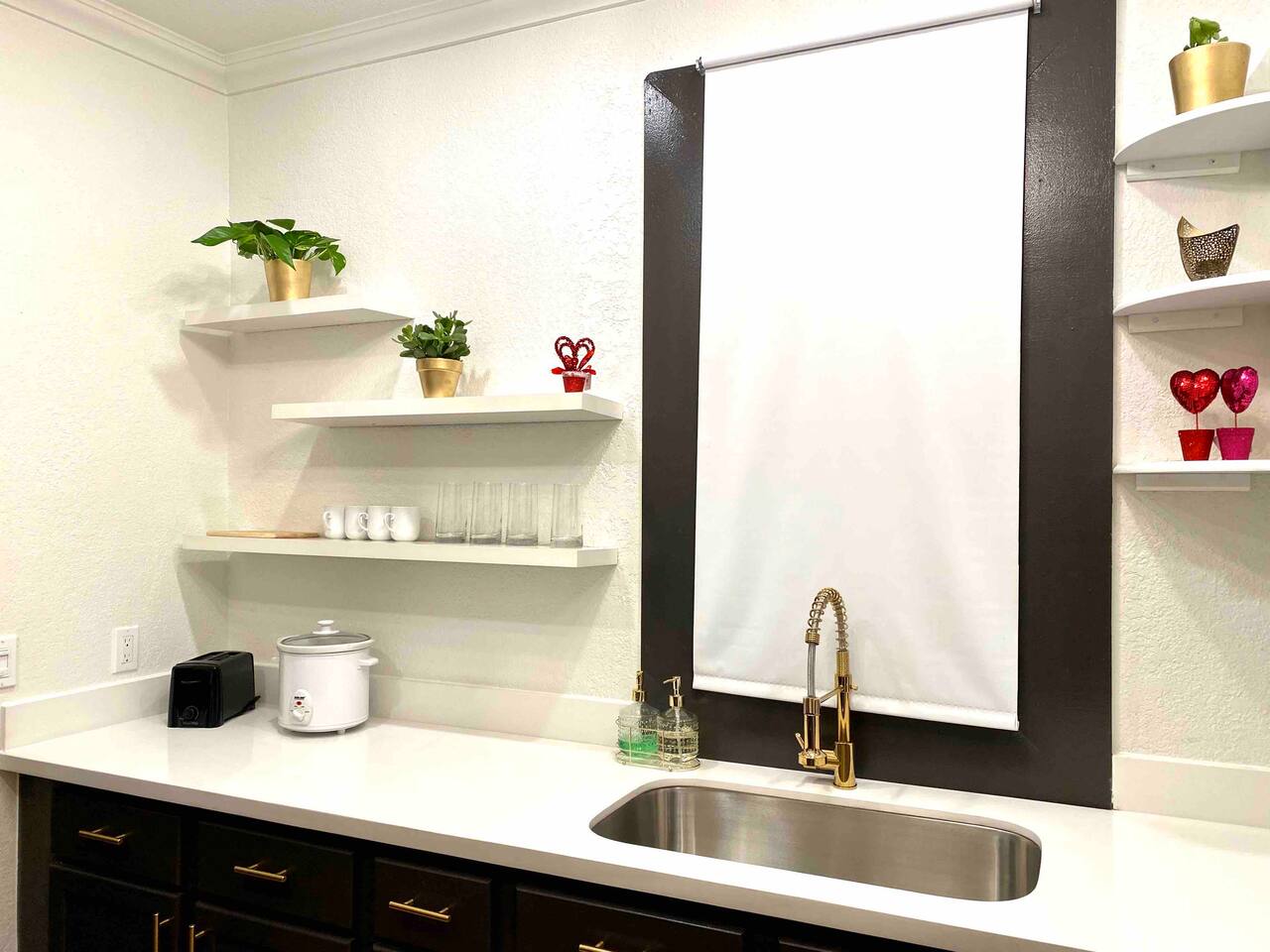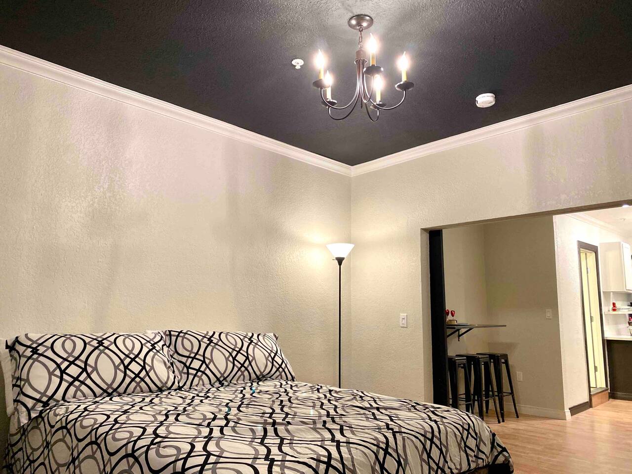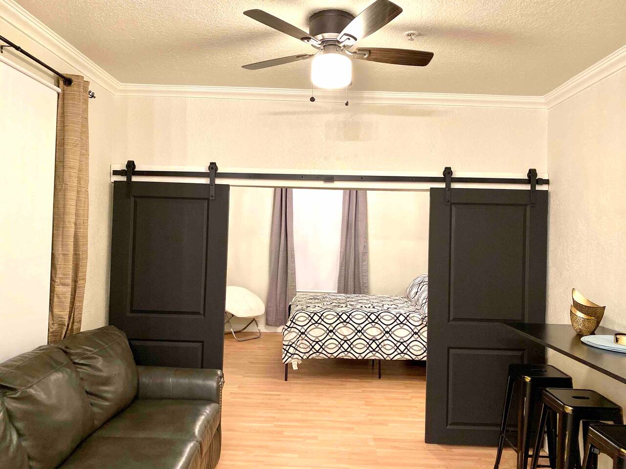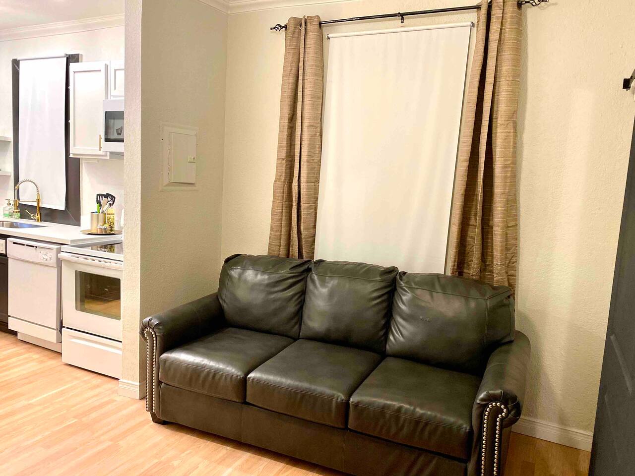 This listing is for recently renovated Apartment 9 inside the Union Plaza Apartment Complex. Follow us on FB and IG @stayunionplaza to see more of Union plaza and El Centro districts. The building was built nearly 100 years ago. The unit is located on the second floor of the building which will require climbing stairs, there is no ramp for luggage. The one bedroom apartment is about 450 square feet and it accommodates 2 guests comfortably and can sleep 4 if needed. ** NOTE: All units are located on the 2nd floor of the building, stairs are not optional, the 1st floor are all commercial spaces. ** The kitchen space was designed with a modern contemporary style in mind, ergo the open shelving space. It is fully equipped for cooking, it features an electric stove with oven, a farm style sink with a garbage disposal, an over-the-range microwave, pots and pans, dishes and utensils and solid white quartz countertops. The bathroom includes a full shower with handheld shower head and great water pressure, as well as a new vanity and a skylight. In the living area, a tall table for 4 people and a sofa bed for guest #3 and #4. Keep in mind that all sleeping arrangements are in the same bedroom. There are two barn doors separating the living area from the bedroom. The bedroom features a King Bed, alternative pillows, 100% cotton linens, a rack for clothes to be hanged, some drawers and a heater. There is a mini split available. Please make sure to review house rules prior to booking!