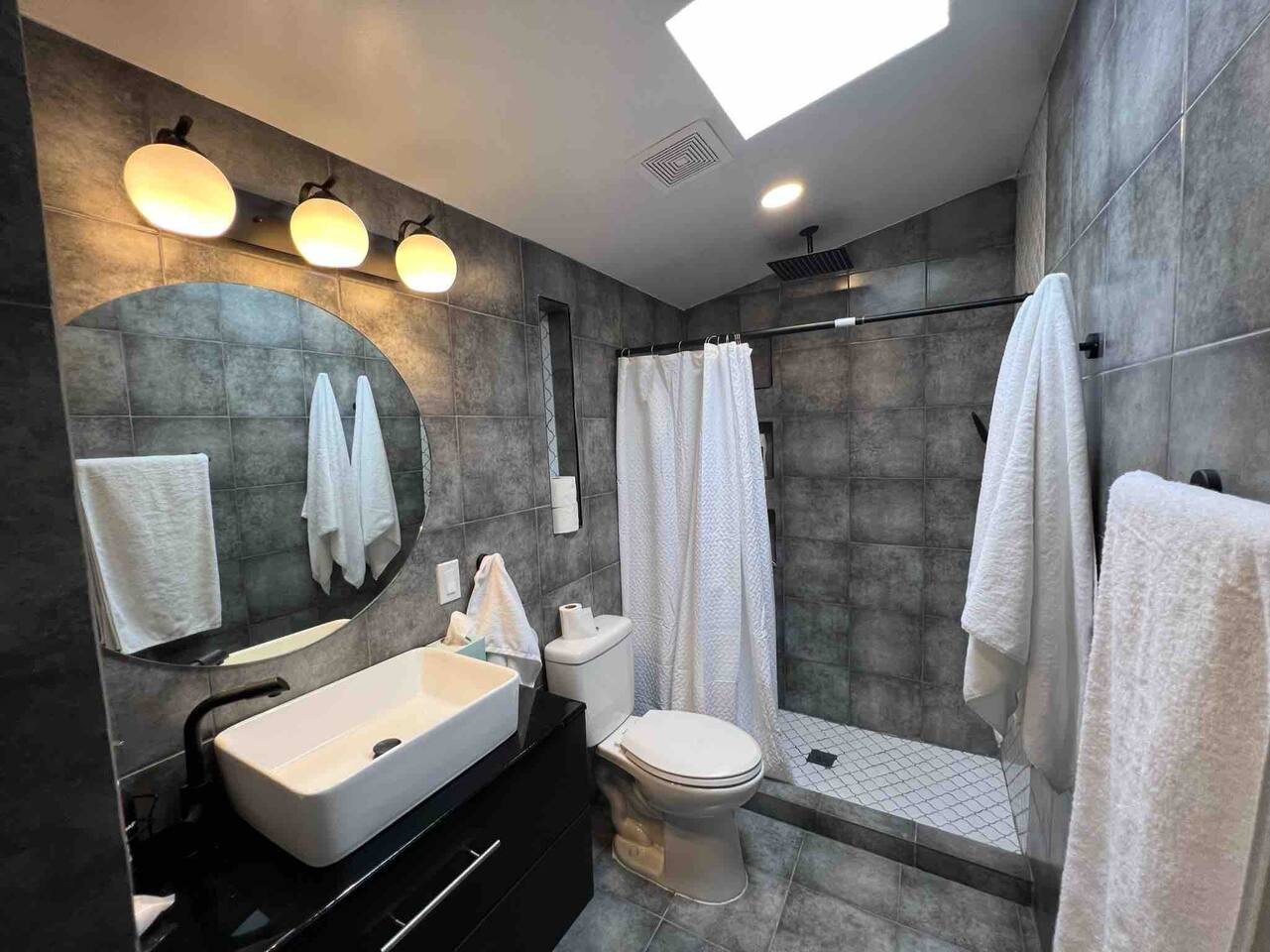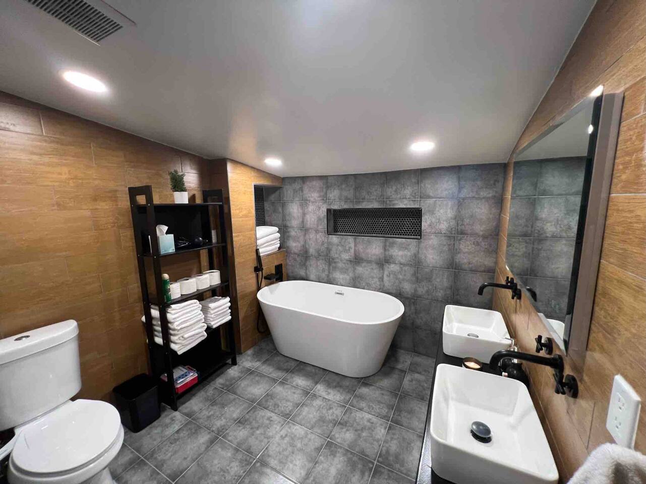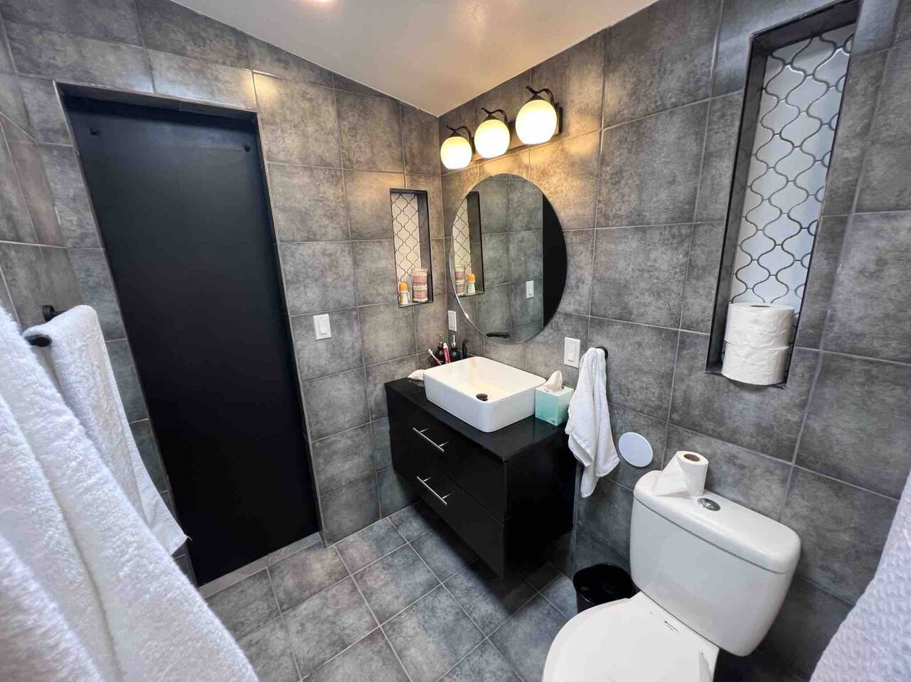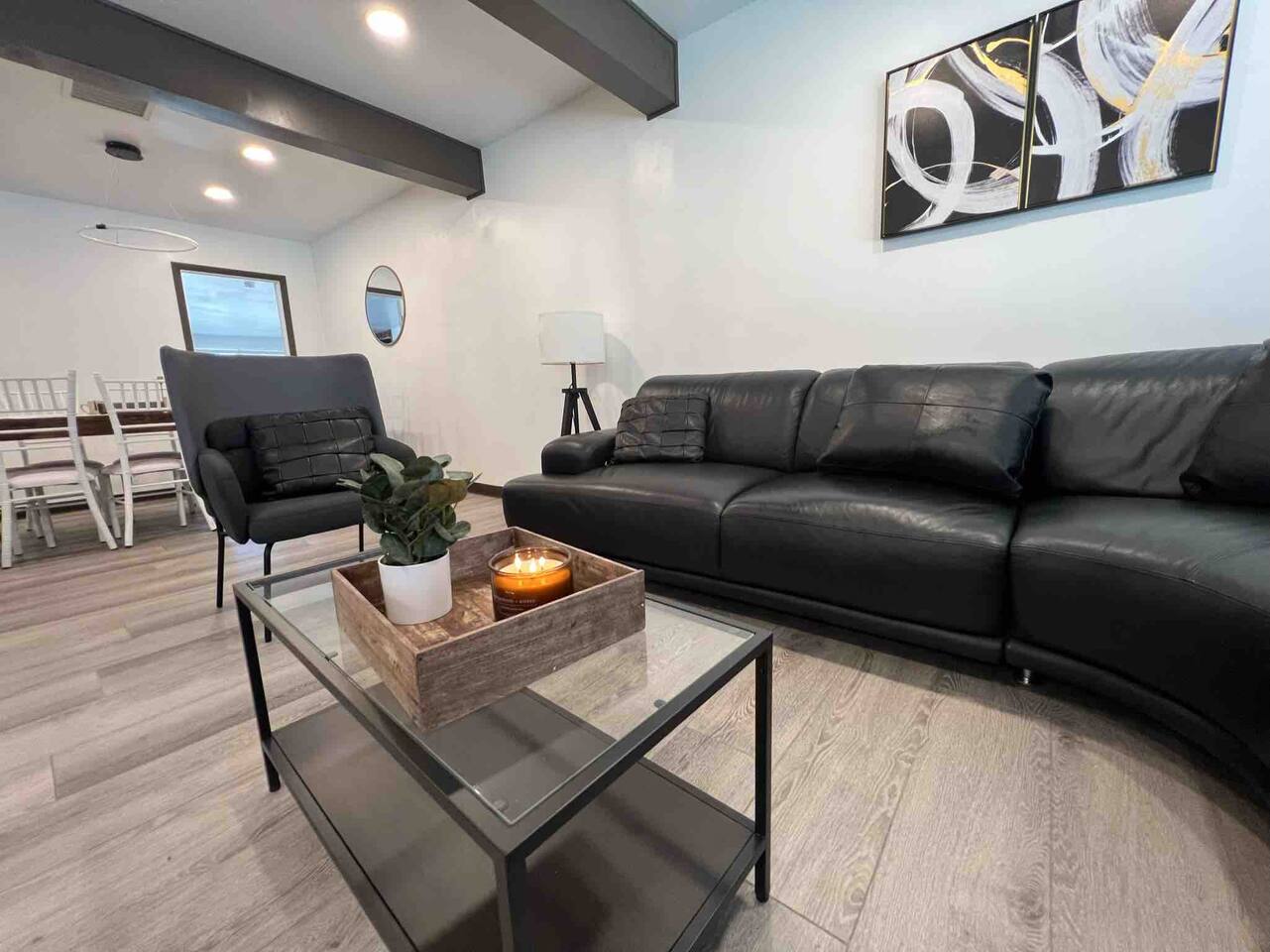 As you enter the home with the self check in code you’ll be welcomed by an open concept kitchen and living room. Our 10ft island welcomes you to a Rustic Luxury experience. The living room and dining table are all part of the open concept. The dining table seats up to 10 people, a piece that was handmade by my husband. The kitchen is equipped with everything you might need, pots and pans to cook plus stainless steel appliance throughout including a dishwasher, double oven, microwave, pot filler, full range and long Island. There’s a total of 2 bedrooms in the home, there’s also 2 full bathrooms total all with great showers and water pressure. The master suite features a king size bed, both down & down alternative pillows, beautiful modern decor. Theres a smart TV available for use, a “Might have Forgotten” basket for our guests. There another kind size bedroom and one bedroom has a bunk bed with a queen bed underneath and 2 single beds up top with down & down alternative pillows and rustic decor. There’s a hallway bathroom with a shower with great water pressure and a double vanity. Please feel free to use any of the toiletries we left behind for our guests. AC and heating is controlled by one central thermostat for the entire home. If you need an extra heater or fan, please let me know.