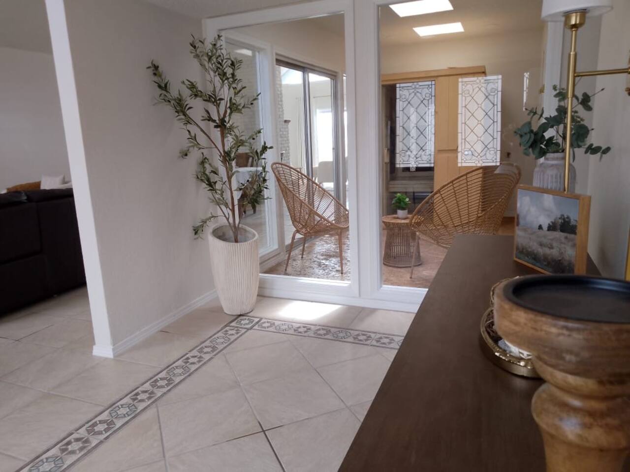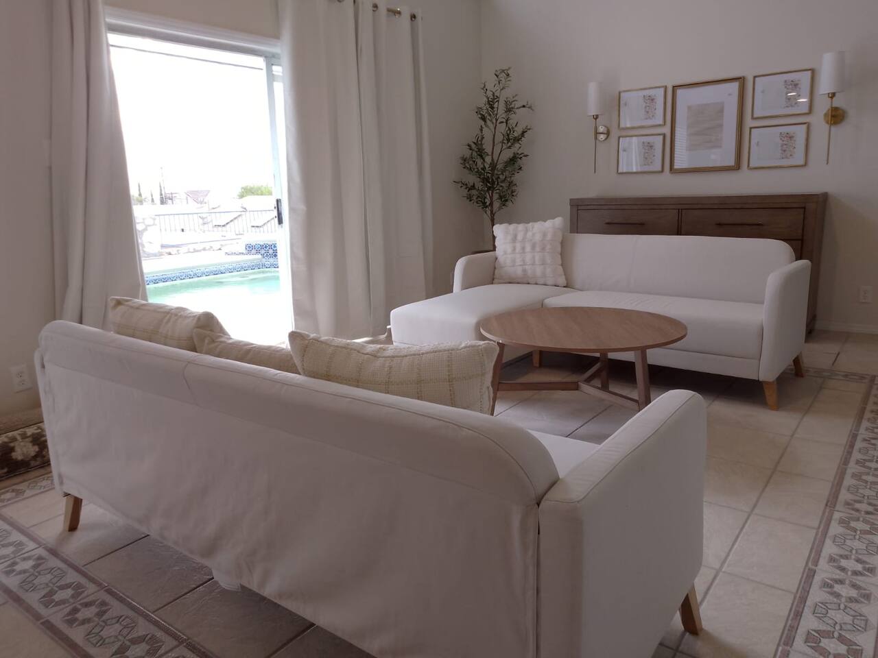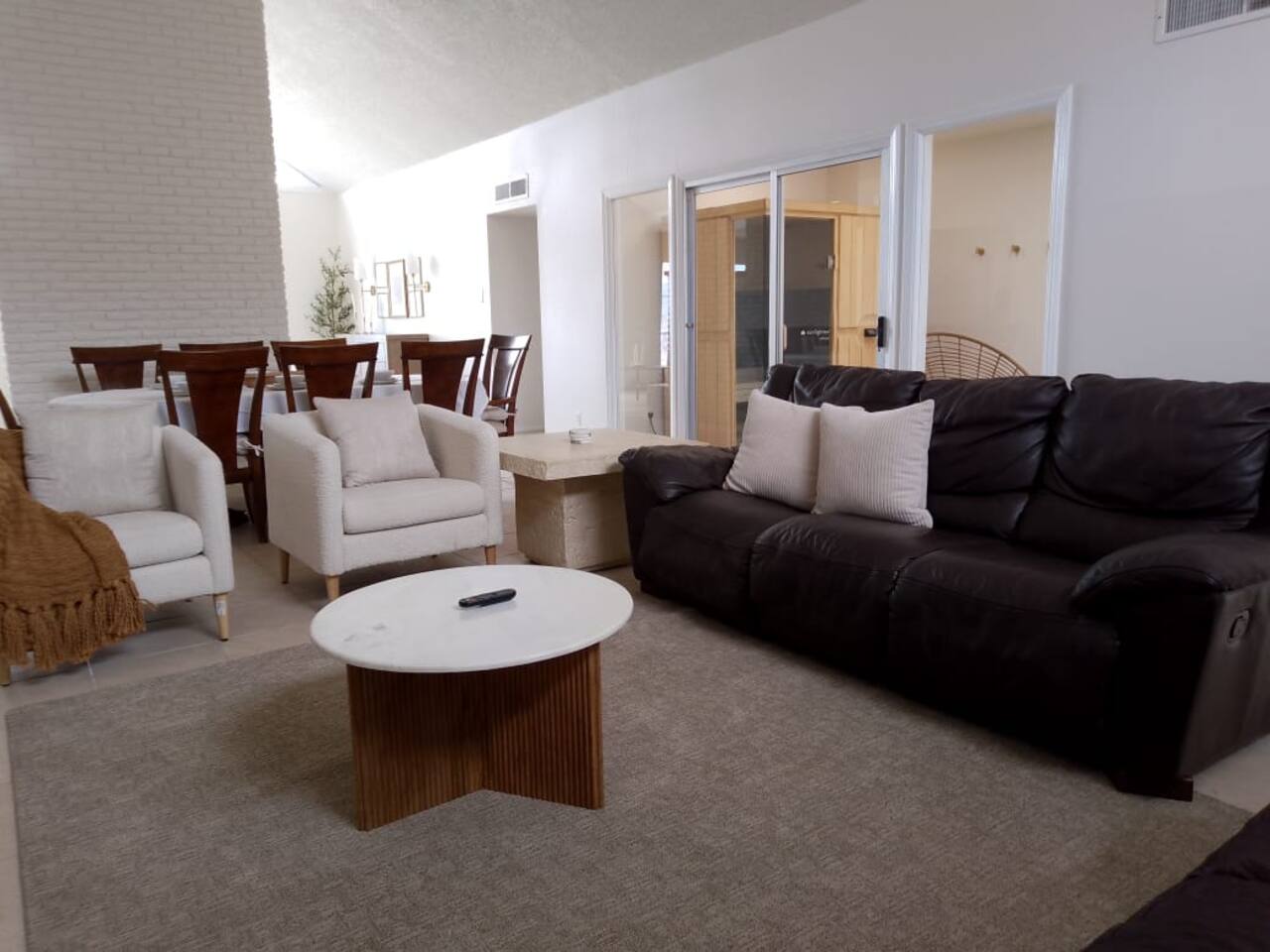 Welcome to our stunning Spanish coastal design villa located by Executive near Montecillo! This luxurious 4 bedroom, 3 bathroom property is the perfect vacation rental for groups of up to 10 guests. The villa boasts 2 king beds, 1 queen bed, and 2 full-size beds, providing comfortable and stylish accommodations for all guests. The double living room offers plenty of space for gathering and relaxing, while the full kitchen is fully equipped with modern appliances for all your cooking needs. One of the highlights of this property is the private sauna, perfect for unwinding and rejuvenating after a day of exploring El Paso. Guests can also enjoy the outdoor pool and jacuzzi, ideal for soaking up the sun and enjoying the beautiful surroundings. Please note that the pool and jacuzzi is heated for an extra charge of $100 per day. Located in the prestigious neighborhood of Los Reales de El Paso, this villa offers easy access to nearby attractions such as shopping centers, restaurants, and hiking trails. Explore the vibrant culture of El Paso or simply relax in the comfort of your own private oasis. Don't miss out on the opportunity to experience luxury living in this Spanish coastal villa. Book your stay today and create unforgettable memories with your loved ones!