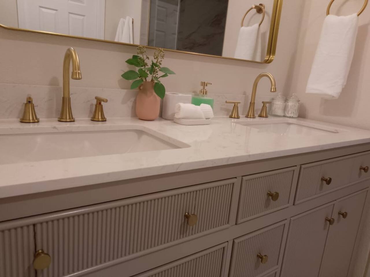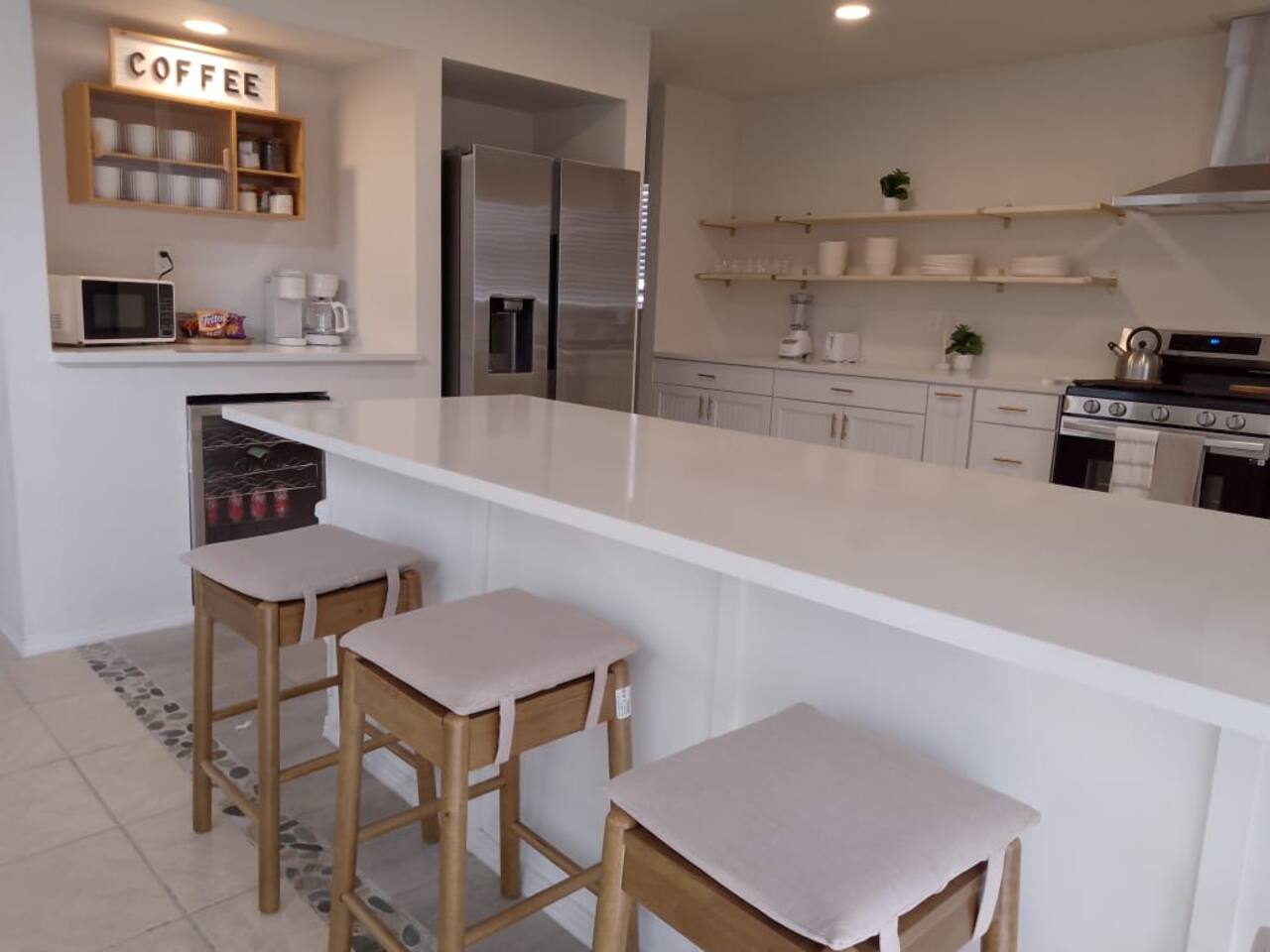 Welcome to our Spanish Coastal 4-bedroom, 3-bathroom Resort! 🏡 Property Highlights: 4 Bedrooms: Two spacious master bedrooms and two additional bedrooms provide ample space for your group or family. There’s 2 king bed, 1 queen bed and 2 full beds for a total of 10 guests. 3 Bathrooms: with double showers Full Kitchens: Whip up gourmet meals or quick snacks in style with fully equipped kitchens featuring sleek modern design Pool heated take a dip in the pool in the backyard, have a bbq and Sauna