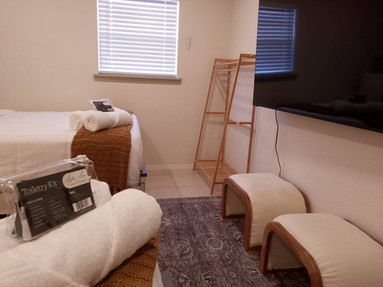 - Essentials Towels, bed sheets, soap, toilet paper, and pillows